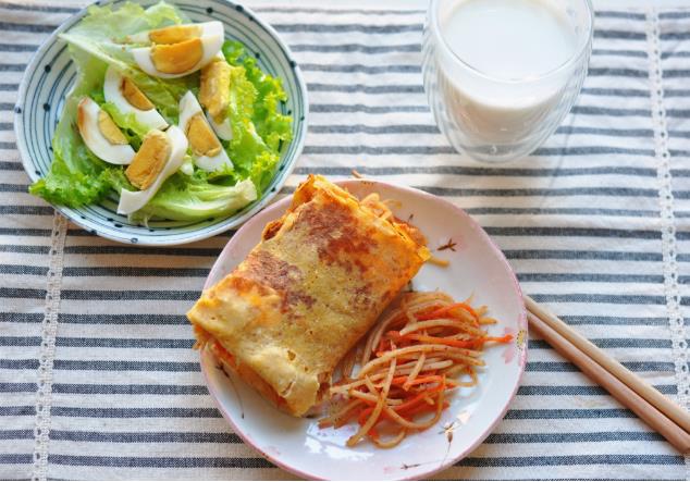 一份混蛋白(一个鸡蛋大小),两份蔬菜(两个拳头)