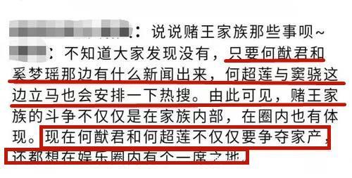 当时有网友爆料赌王一家的内斗不仅体现在家族内部,还体现外界热度的博弈以及都想在娱乐圈占有一席之地。