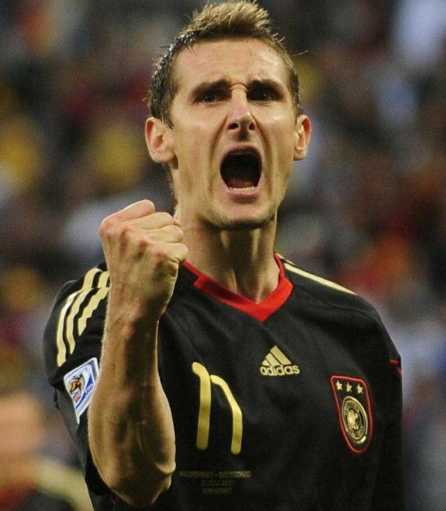 绰号“K神”,克洛泽终结能力顶级,头脚双绝。他征战德甲时成就了德国足坛荣誉大满贯(2次联赛冠军、5次国内杯赛冠军以及射手王、最佳球员、德国足球先生等荣誉)。他还是两德统一后德国首位世界杯金靴得主,位列世界杯总射手榜榜首(16球),夺得1次世界杯冠军(2014年)。而他的进球庆祝动作后空翻也给球迷留下了深刻印象。