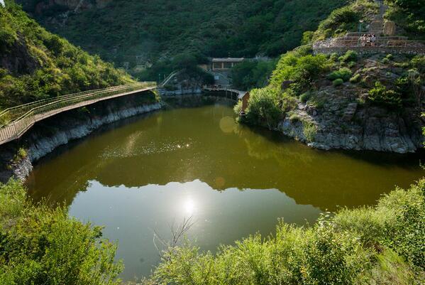 据说曾有神女在安家沟戏水,将形态极似莲花的台阶逐级登阶,到达一泓清池中游玩,后人把这里就叫做“月亮湾”。月亮湾内有悠然的野鸭,有休闲的垂钓者,还有一片片的新绿,景色尤为惬意。