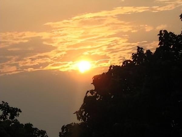 我想起了宋之问,想起了宋之问的《见南山夕阳》,想起了诗中的名句:“夕阳黯晴碧,山翠互明灭。”