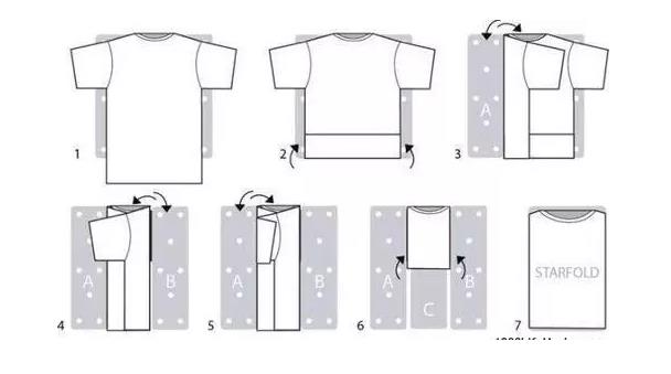 大功告成!按照下图叠衣步骤开动就好啦!(衣物要正面朝下叠哦,这样叠出来的衣物正面图案面朝上才便于拿取哦!)