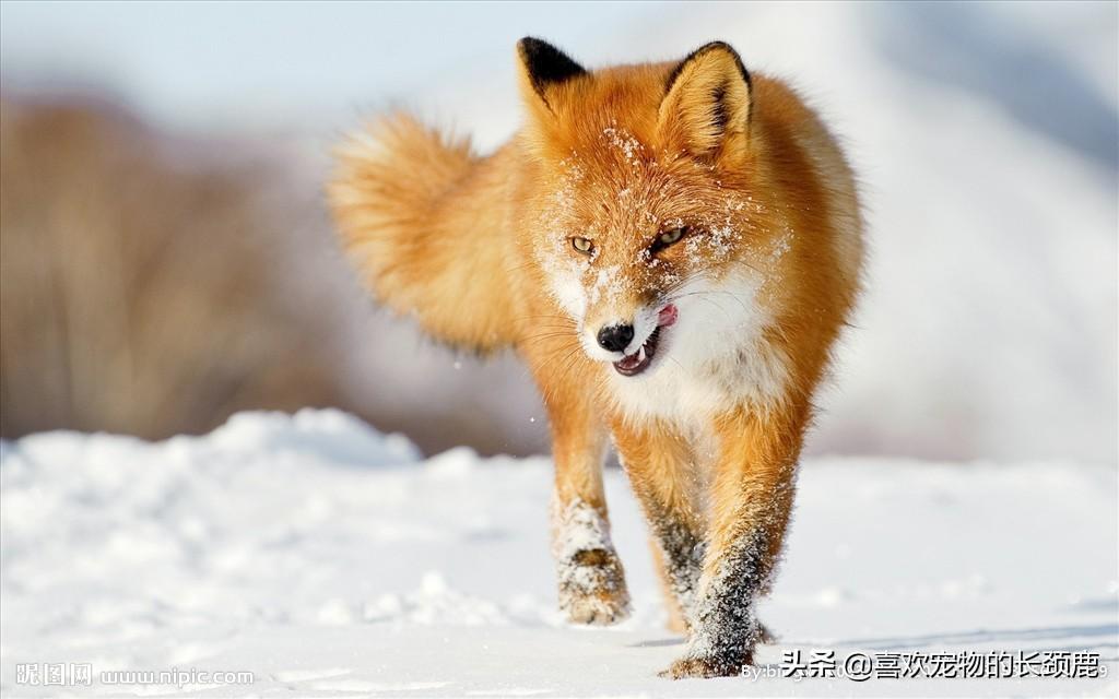 其实我们根据它们的名字"红狐"就可以知道它们的毛发通常为红色,也就是最常见的颜色,不过不是大红色,而是红棕色。因为它们习惯生活在雪地里,所以它们的毛发是很厚的,,并且身体细长,尾巴又粗又长,眼睛是"柳叶眼",嘴巴较长,拥有三角形且直立的耳朵,可以说还是很漂亮的,它们的体型一般犹如中等体型的狗狗一样大小,四肢也像狗狗一样。