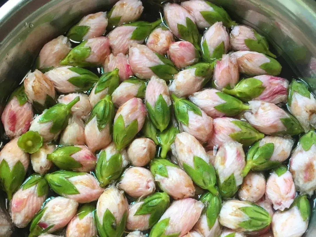 棠梨花花苞摘下来,焯水挤干水分,凉拌或者爆炒,味道超级棒。棠梨花花苞摘下来,焯水挤干水分,凉拌或者爆炒,味道超级棒。