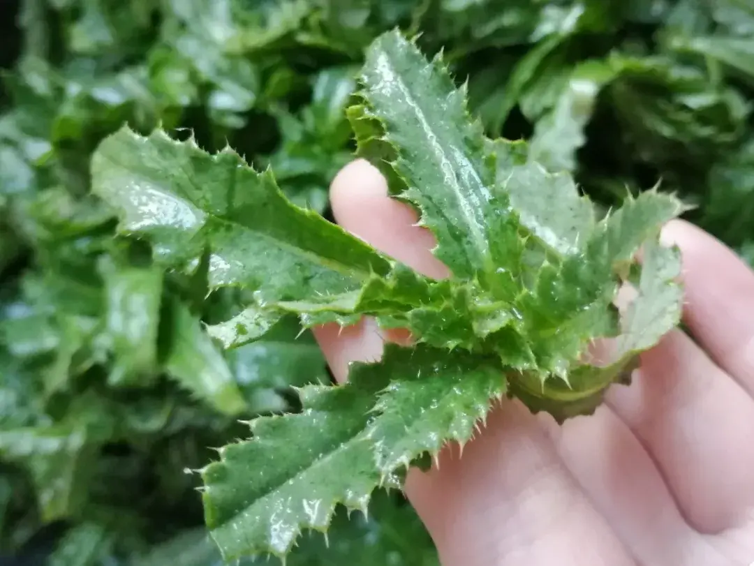 叶子边缘有刺,采摘要趁早,不然老了刺会变坚硬,刺儿菜适合焯水凉调或者清炒。叶子边缘有刺,采摘要趁早,不然老了刺会变坚硬,刺儿菜适合焯水凉调或者清炒。