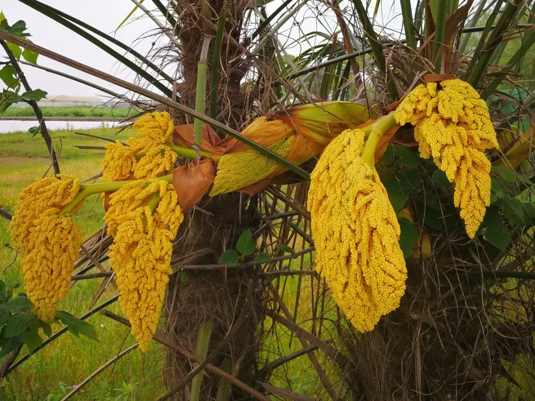 4-5月份棕榈花开,剪下金黄色的棕榈花,可以炒菜、煲汤,多的晒干储存。4-5月份棕榈花开,剪下金黄色的棕榈花,可以炒菜、煲汤,多的晒干储存。