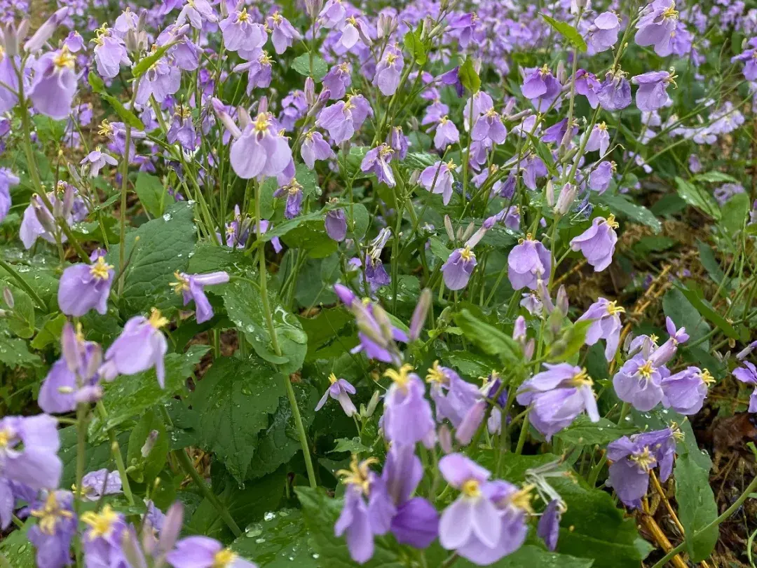诸葛菜又叫二月兰,现在应该进入尾声了,再晚就老啦,摘嫩枝条回去炒菜、包饺子味道都不错的。诸葛菜又叫二月兰,现在应该进入尾声了,再晚就老啦,摘嫩枝条回去炒菜、包饺子味道都不错的。