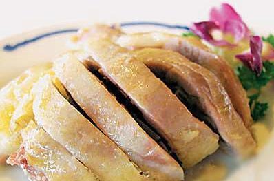 主要食材和烹饪方法: 南京盐水鸭以鸭为主要食材。制作盐水鸭的过程中,首先将鸭子用盐水浸泡一段时间,然后经过煮熟、晾干和晾凉等步骤进行处理。最后,将鸭子切成薄片或小块,供食用。