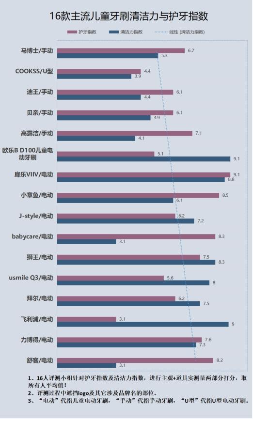 市场中很多品牌为了博热度总是宣传自家产品清洁力强且不伤牙,但实际的伤牙率却很高,家长们看到孩子伤牙更是心痛。在这里我也从权威口腔论坛上找来了16款儿童电动牙刷清洁力与护牙指数评测表可以更客观的对比,也根据我以往的测评经验给大家推荐几个优质的品牌,让大家不掉坑。