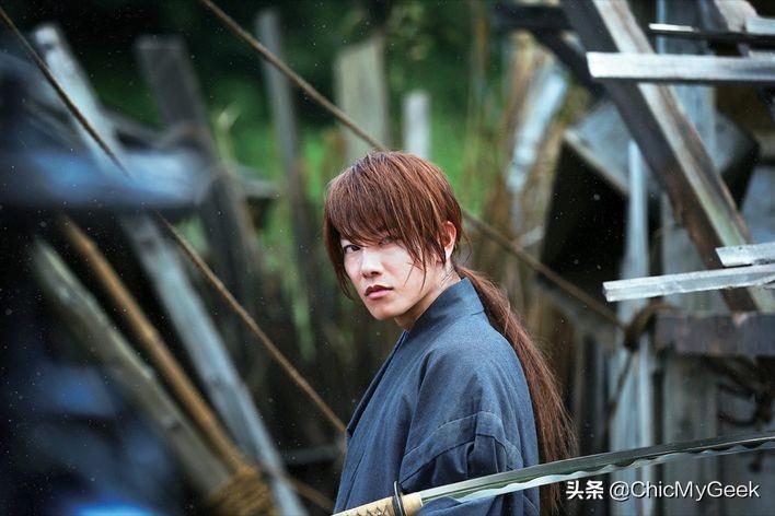 佐藤健扮演的主角绯村剑心拿着武士刀行侠仗义,但却坚持不杀原则,故选用刀刃向着自己的逆刃刀。 电影中健藤健有大量武打场面,更有不少飞跃动作,甚至在没有吊威亚情况下在屋顶上奔跑。 但原来他并没有用替身,全都亲身上阵,非常敬业! 而他在戏中一身红衣剑客打扮,与流畅的动作、潇洒的剑式,实在极具魅力。