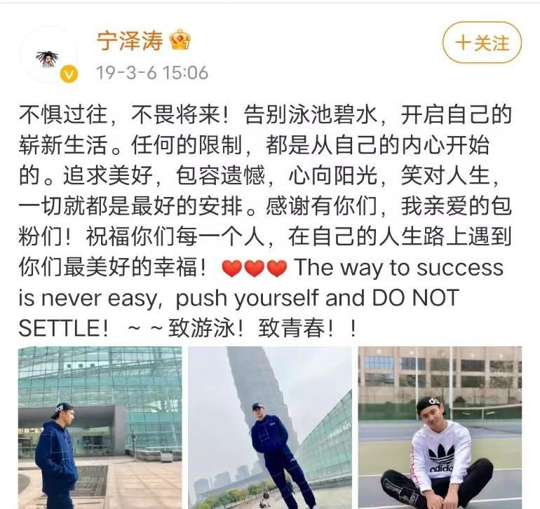 在微博的个人账号上,宁泽涛表示要开始自己的崭新生活,因为其中种种的原因,他也感到十分遗憾吧!
