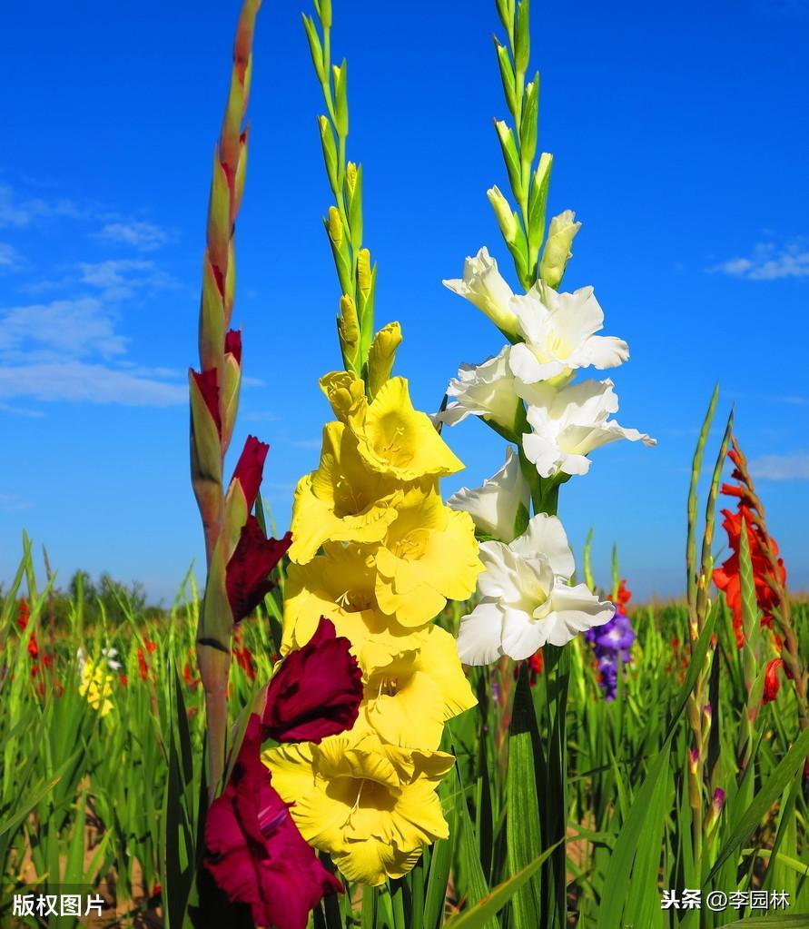 唐菖蒲又名菖兰、剑兰、扁竹莲、十样锦、十三太保,为园艺杂交种,世界各地园艺品种非常多。