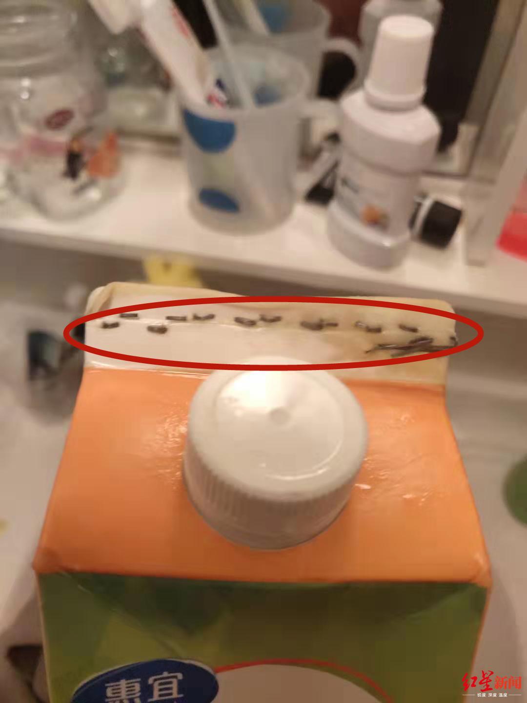但随后,王先生将塑料袋里的橙汁拿进卫生间拆开,这才发现,这盒橙汁不仅是漏的,封口处竟然有一排订书钉!这让王先生感到很愤怒,王先生说,他联系客服后,对方只回复说正在查询原因,却一直没有得到答案。