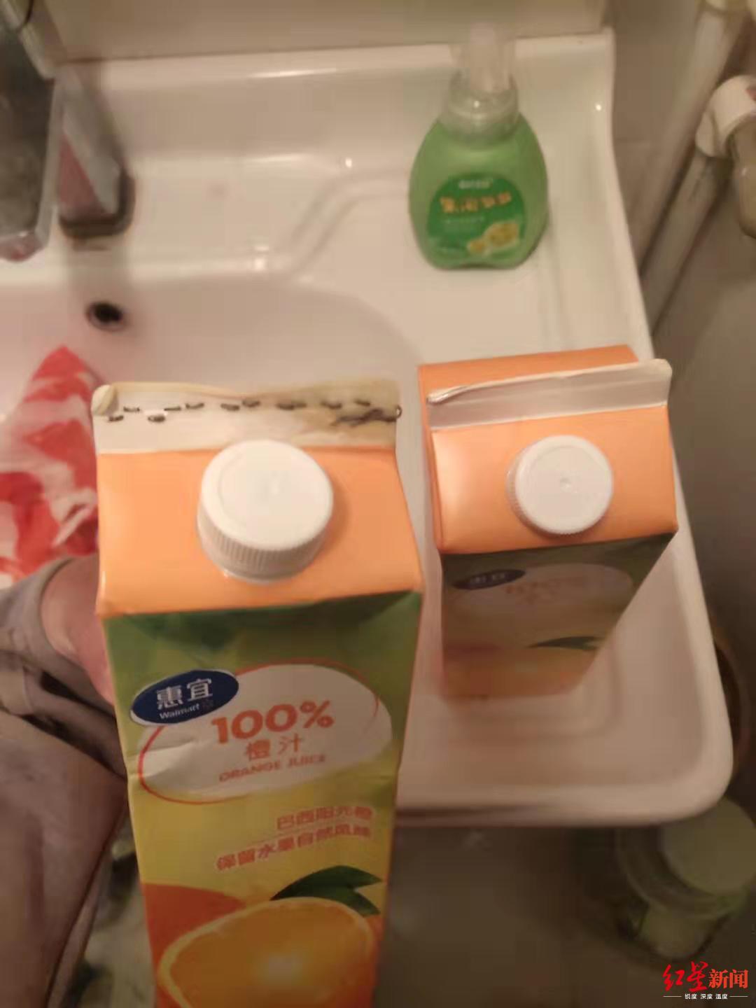 因在理塘工作,新鲜水果运输不便,王先生于10月14日凌晨,在沃尔玛京东自营官方旗舰店购买了8瓶(盒)果汁,分别是桃汁、橙汁、猕猴桃汁和椰汁各2瓶(盒)。