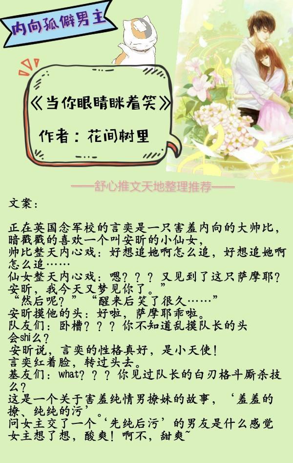 书评:军校害羞大帅比“撩”可爱小仙女。男主上军校的,前期很纯很纯,都不看女主的那种,女主学舞蹈的四次元小仙女。男主前期害羞,对女主一见钟情,念念不忘,后来俩人分开了2年,再见时,男主变成霸道队长人设。开始对女主又撩又宠,开车的地方可以去作者微博看。整体很甜甜的!男女主虽然是跨国恋看起来很辛苦,但正因为他们的跨国恋使整篇文章增添了不少异国色彩让整篇文更加丰满,可读性很强的一篇文,推荐!