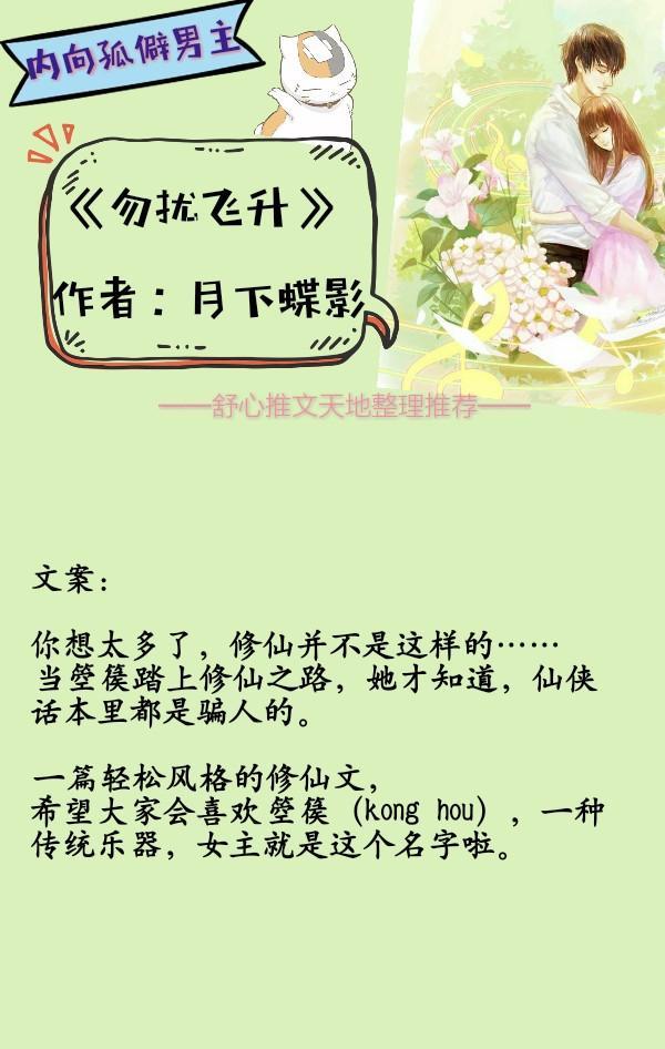 书评:月下蝶影大大的新完结文,一如既往的好看。一贯的苏爽甜的修真文。女主可爱灵动,运气好的不得了,人设很讨喜。整个宗门里的人物也都很有趣,没有什么恶毒男配女配,也没有勾心斗角。男主是冷漠无情的剑修,写的话本编造自己的世界,没有人看,却只有女主特别喜欢,俩人因此相识。后来在历练和旅途中开始对对方动心。男女主都是修炼天才,后来结尾在一起一路甜!我看过最温馨最逗比最可爱的修仙文了。
