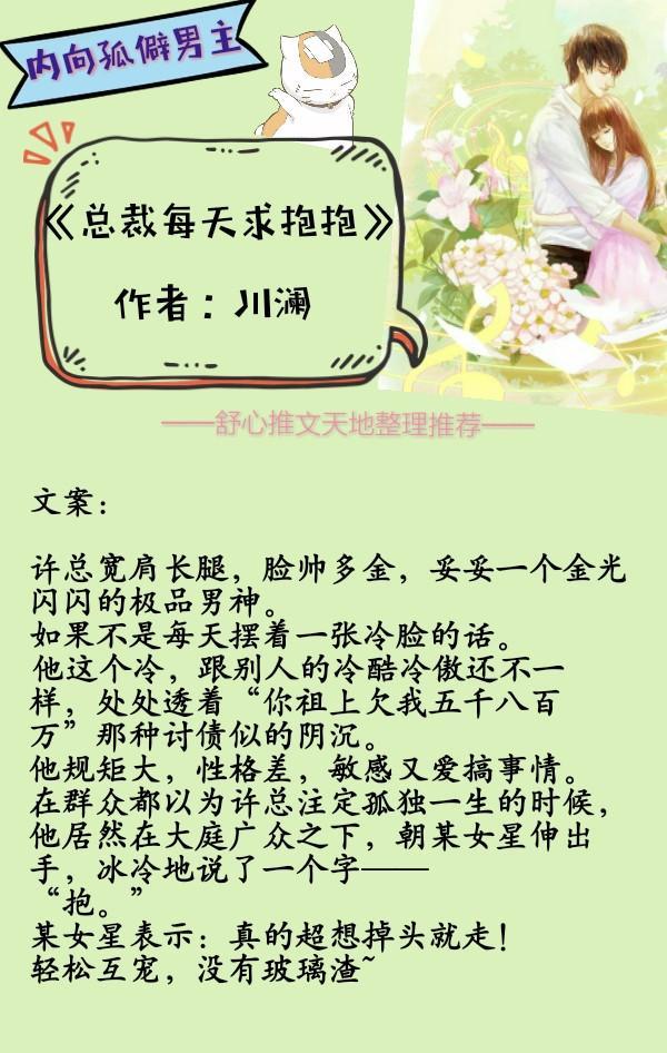 书评:男主是总裁,女主是当红明星。娱乐圈甜文。男主有心理疾病,对女主有肌肤饥渴症。高冷阴沉是他的伪装,实际上超深情,超可爱 ,超萌。后来两人谈恋爱来,男主深情克制,敏感缺少安全感,但好在女主超级宠他。男主超大型忠犬萌宠 ,会粘人、会委屈、会哭的那种。男主的爱承的让人不可辜负。好在被女主细心保存,妥善收藏。此文有微微虐男主 ,但是整体很甜,很走心,强推!