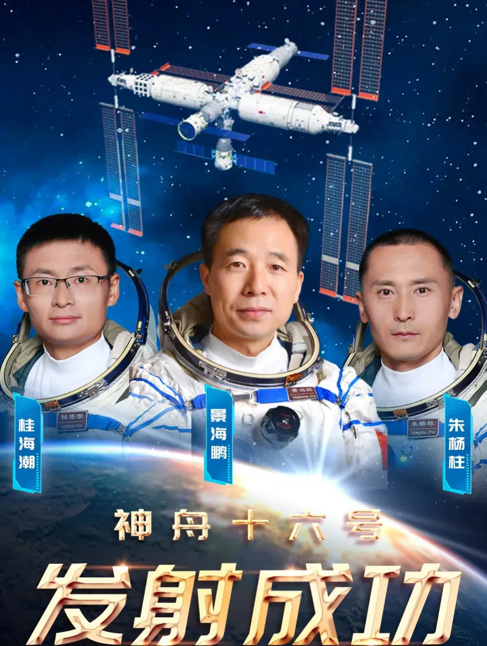2023年5月30日在酒泉卫星发射中心发射成功,航天员景海鹏、朱杨柱、桂海潮将完成与神舟十五号乘组在轨轮换,驻留约5个月,开展空间科学与应用载荷在轨实(试)验,实施航天员出舱活动及货物气闸舱出舱,进行舱外载荷安装及空间站维护维修等任务。