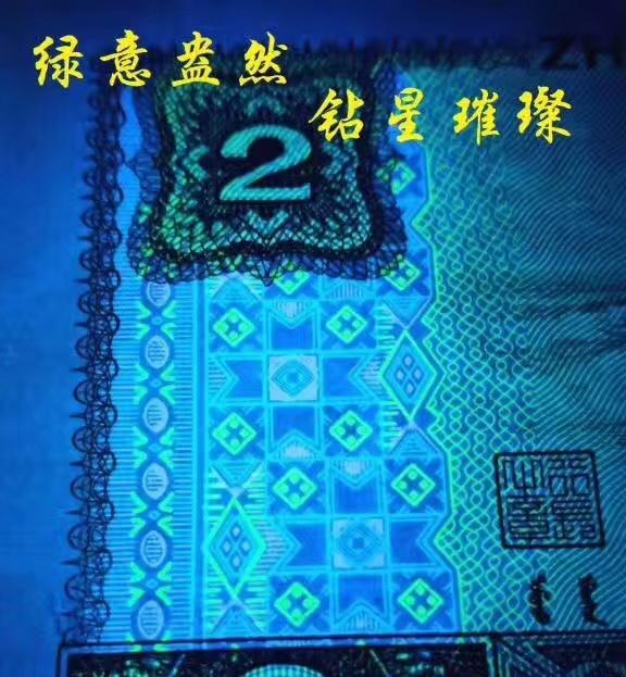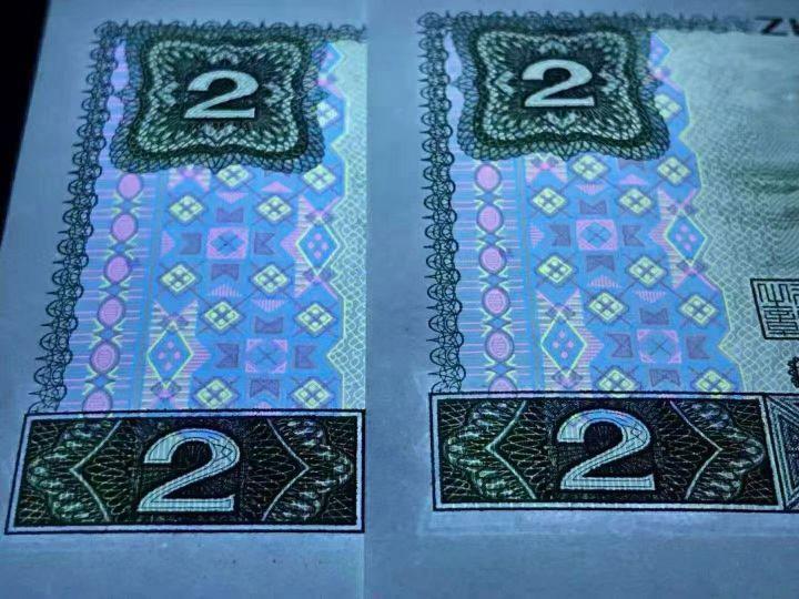 四版纸币中的802,即1980年2元纸币,目前的玩家除了关注普通品种和补号之外,最为惹眼的就是绿钻了。所谓绿钻,当然是指荧光灯小的效果。普通自然光线下,是看不出太大的区别的,但是只要荧光灯打开,美轮美奂的效果就会立刻呈现在你的面前。