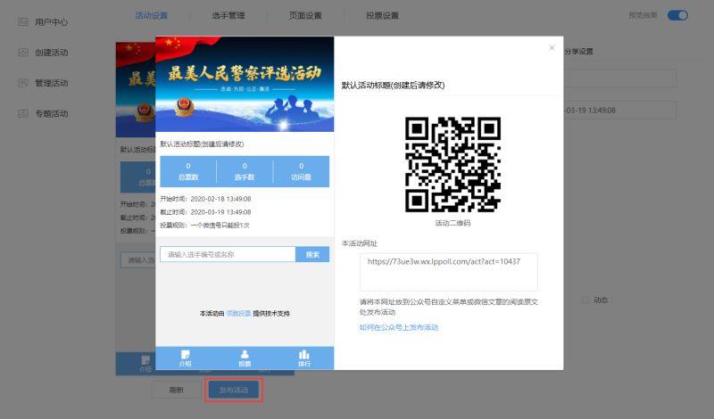 注意:发布活动后,您有需要修改的地方可以对活动进行再次编辑,不影响当前投票活动的进行。