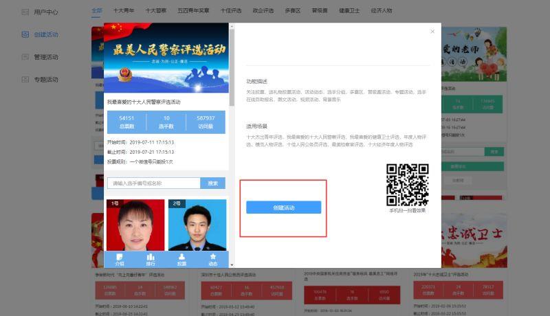 第二步:选择模板选择您需要的模板点击创建活动,模板只是为您提供一个活动的框架,图片、配色、文字您都可以修改。