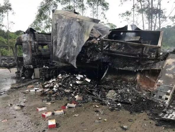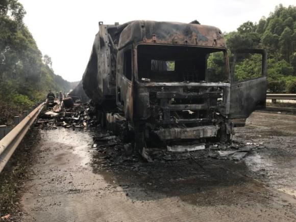 事故引起高速路段拥堵大约9公里,不过幸运的是,货车司机安全下车,事故没有造成人员伤亡。目前大火已被扑灭,不过,可以看到货车车体全部变黑,已经报废,此次事故损失惨重。目前起火原因还在调查中。