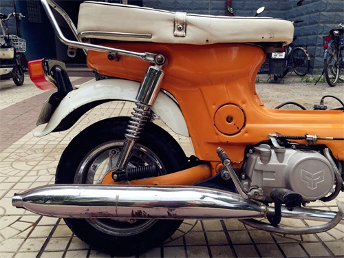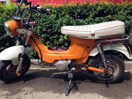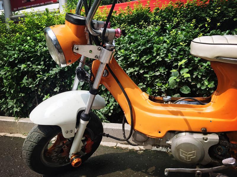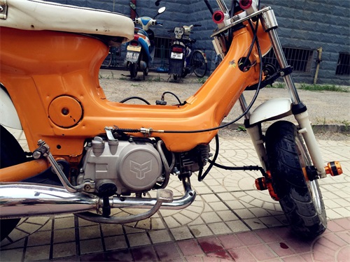改装了前后减震,猴子把,硕普125发动机,前碟刹,嘉陵排气,长颈鹿后架子,全包坐垫。就是不能上牌子了