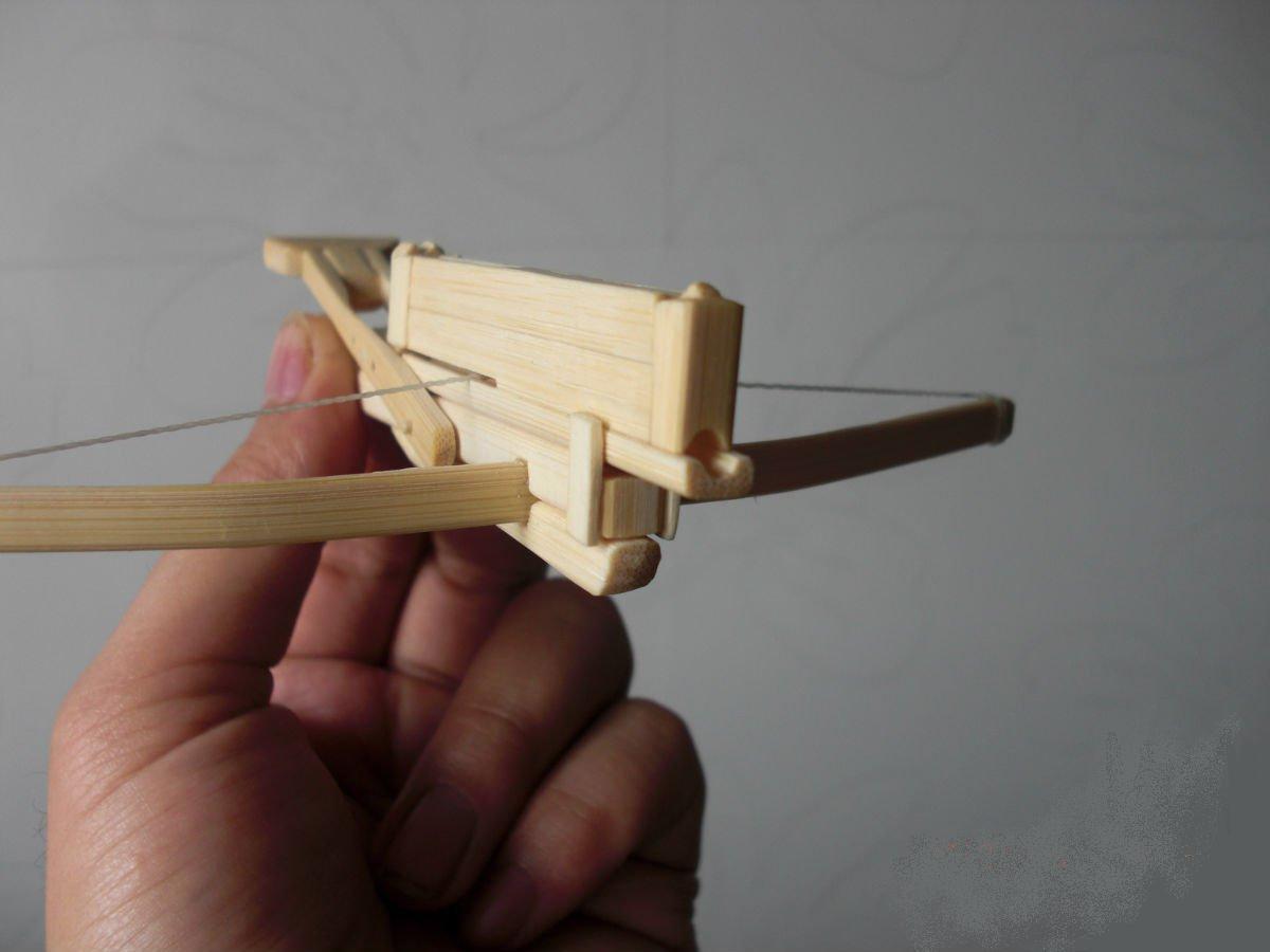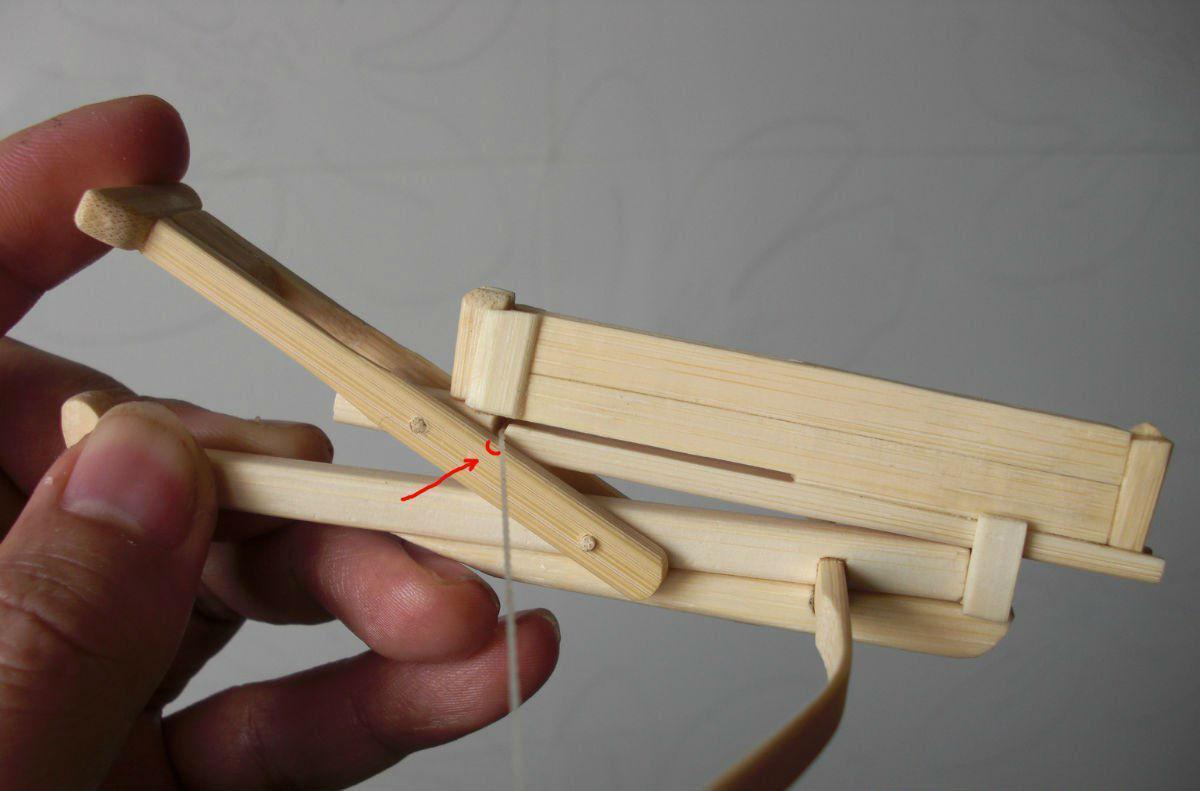 组合完成之后组装好弩弦和弩机,一把迷你诸葛弩就完成了。将弩箭放入箭匣,前推杠杆让弩弦挂入勾槽。