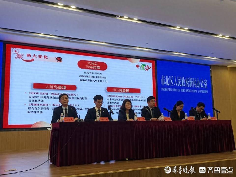 1月17日下午,市北区举办2024年青岛萝卜·元宵·糖球会新闻发布会,2024年青岛萝卜·元宵·糖球会将于2024年2月18日——2024年2月25日即农历正月初九——农历正月十六期间举办。正式节会共8天。与往年相比,今年的糖球会有两大变化。变化之一是举办会场。2024年糖球会将在两个会场举办,一是大鲍岛会场联动台东步行街,二是海云庵会场。今年的糖球会突出国潮和科技两大亮点,集中展示传统文化中的时尚元素。