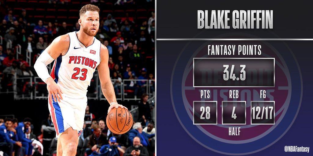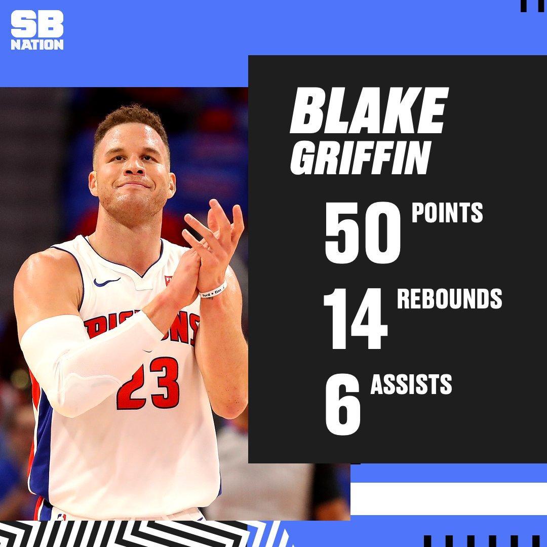 10月24日,活塞主场迎战76人。尽管76人是今年东部决赛的热门,而活塞在上赛季混迹在乐透区,但76人一直无法拉大分差,最终通过加时,活塞以133-132险胜76人。格里芬全场35投20中,三分球10中5,砍下了50分14篮板6助攻,其中50分也创造了个人生涯得分纪录。