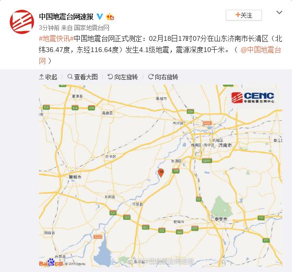 山东位于的郯庐地震带,地震的频率也是比较频繁的。进入2020年,山东济南长清区(北纬36.47度,东经116.64度)发生4.1级地震,震源深度10千米。这次地震震感非常明显。