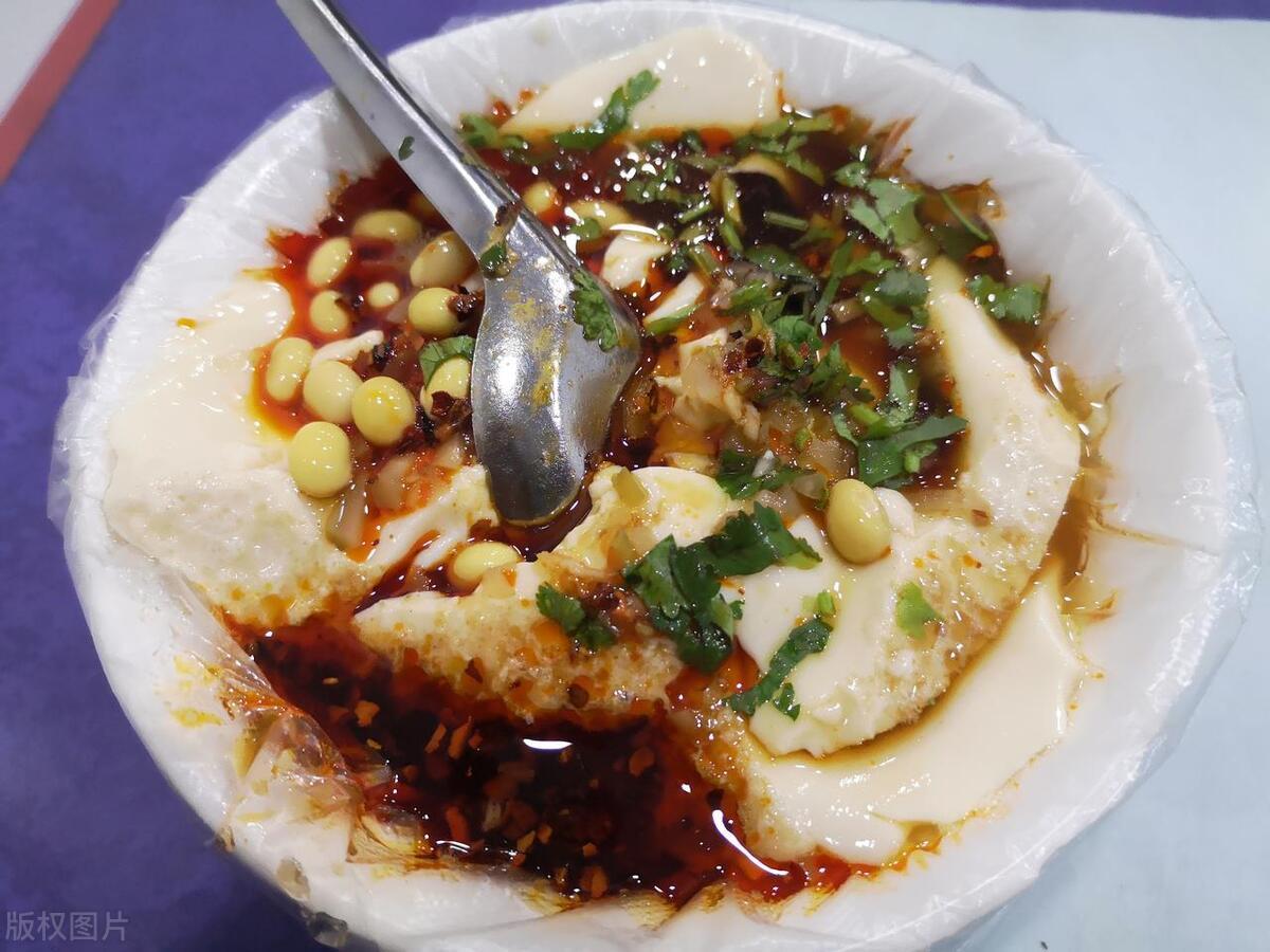 7. 豆腐脑:豆腐脑是北京人喜欢的早餐之一,由豆浆煮制而成,与海鲜酱、豆干等配料搭配食用,清香细腻。