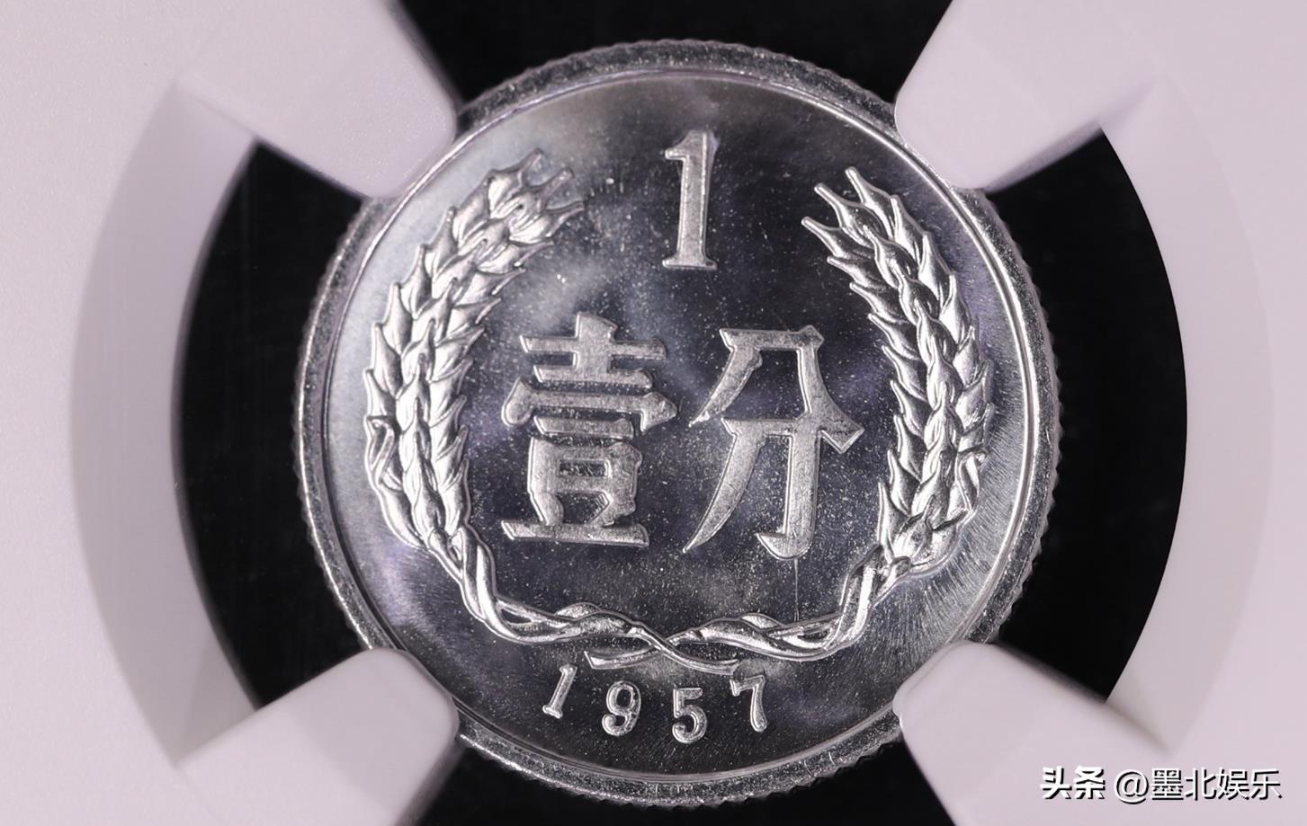 这枚就是1957年发行的1分硬币,大家都知道我们国家是从1955年开始铸造分币的,刚开始铸造的仅有1分以及五分,2分是从1956年开始铸造,1957年正式开始铸造使用分币,面值分别是1分、2分以及五分,今天给大家说的这枚一分硬币就是1957年发行的一分硬币!