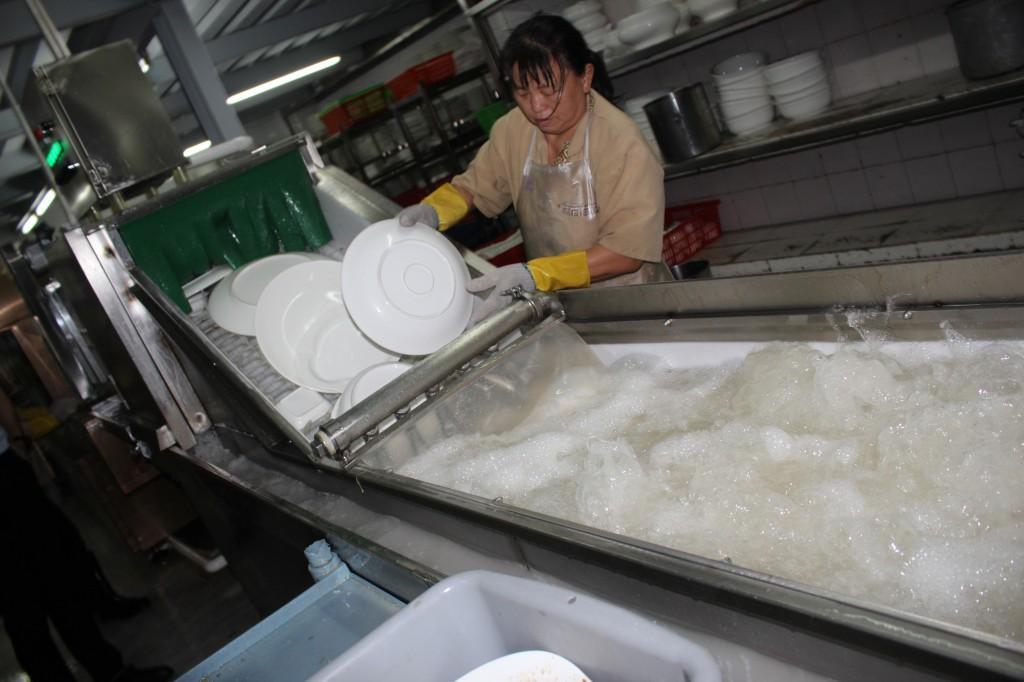 1.先把脏餐具的残渣刮干净,然后把餐具按正确的方式放在整理台。 如果洗碗机没有除渣器,则需要用花预先冲洗脏餐具一次,然后再送到机器进行清洗。