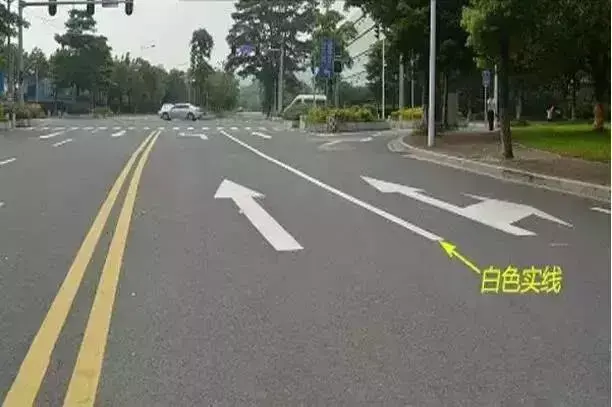 作用:白色实线的作用是分隔同向车道,不能越线行驶,通常是划在交叉路口的交通灯前。