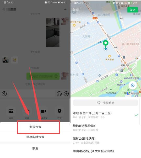 如果想要快速的了解对方位置,我们还可以通过【发送位置】和好友分享当前所在位置,不过这种方法只能单方面的看到一个人的位置。