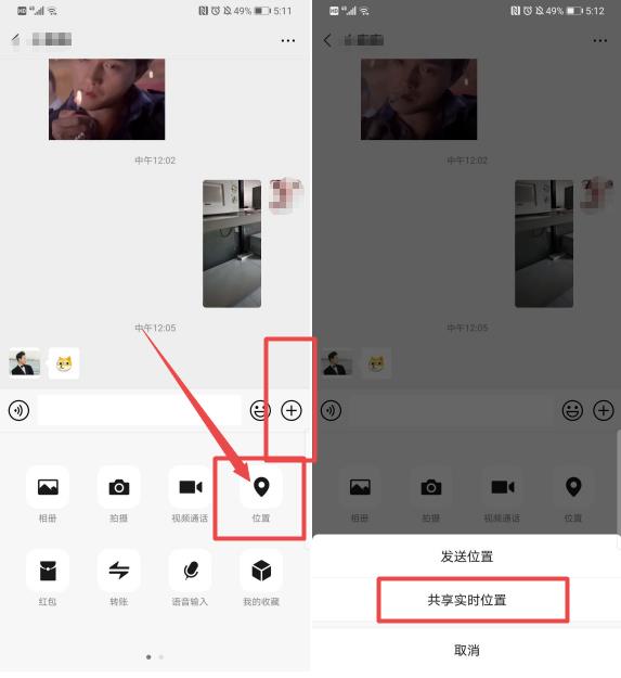 1、首选需要打开微信点击和好友聊天页面,点击右下角【+】号,然后选择【位置】,点击【共享实时位置】,开启之前需要双方全部打开这个功能才可以获得对方的位置。