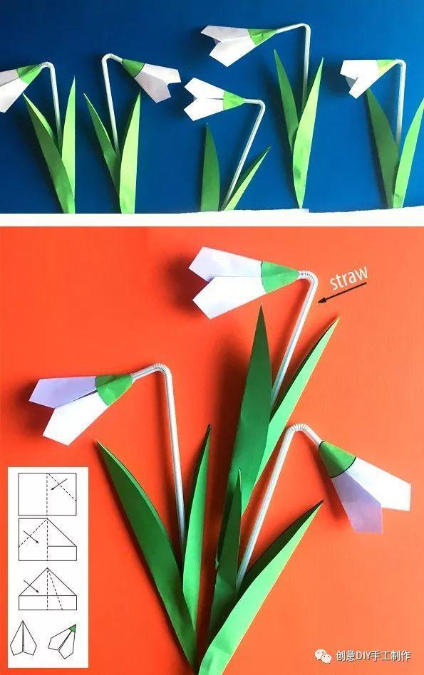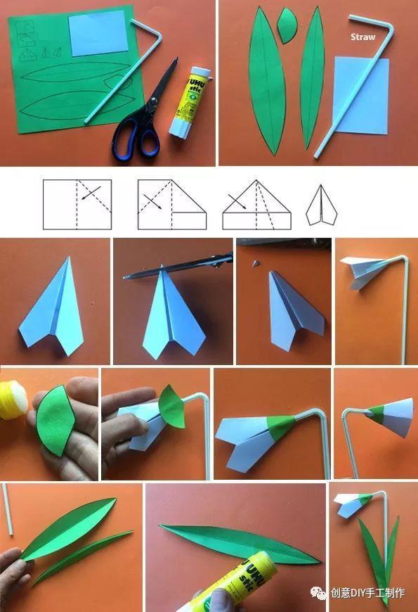 材料和工具:彩纸、吸管、固体胶、剪刀