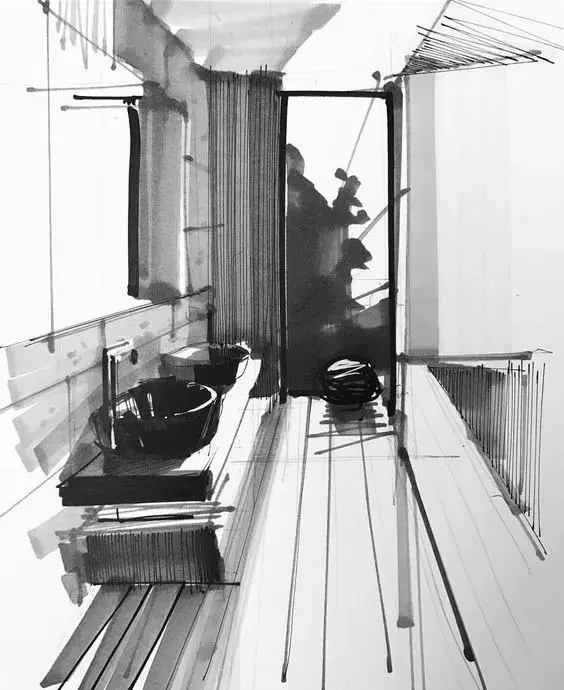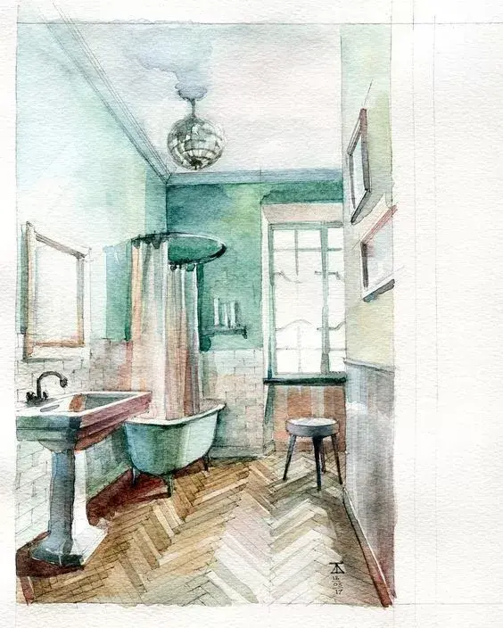 一组关于卫生间空间的手绘表现,卫生间也是空间中很重要的一部分,设计的好坏关系到使用的方不方便,所以小小的一个卫生间可得有着深入的推敲设计。