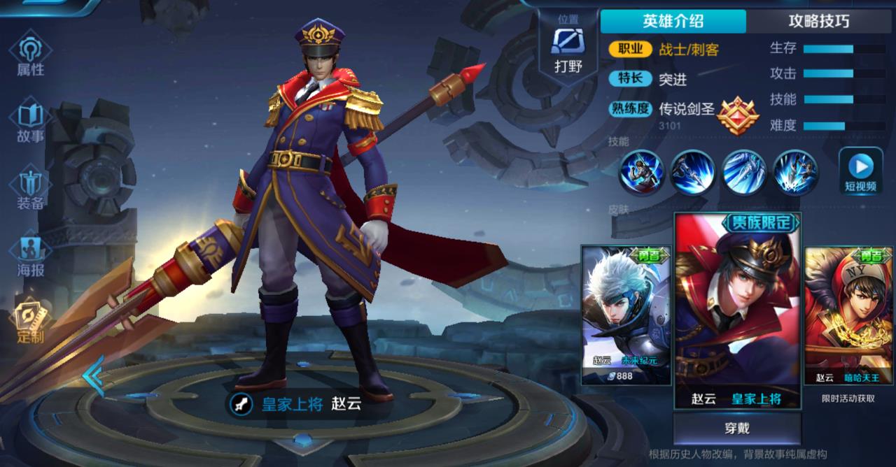 赵云的这一款皇家上将皮肤是一款与项羽的海滩皮肤以及狄仁杰的魔术师皮肤都是属于贵族限定皮肤系列。想要获得这一款皮肤需要到达会员五才会免费的送给大家,基本上需要大家花费至少四五百块钱这样。不过这款皮肤整体上来说也就相当于一个勇者的品质,在赵云众多皮肤里面算不上特别优秀的一款皮肤。作为一款相当于大家升级会员的福利,从打击手感以及技能特效上来说,还是可以接受的一款皮肤,不过它的品质对比狄仁杰的魔术师皮肤还是差的比较远的。