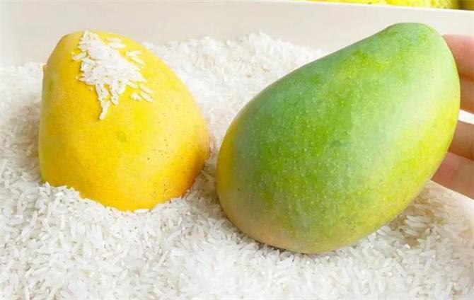 另外一种方法是使用大米催熟。将芒果放入米袋中,用大米将芒果包裹住。大米也会释放出乙烯气体,而且效果非常好。这种方法可以让芒果在1-2天内成熟,而且还能保持芒果的新鲜度和口感。