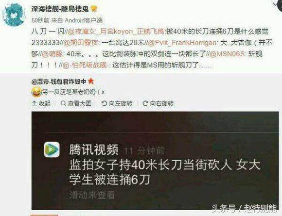 那是一个2016年的6月26日,因为腾讯新闻小编一时手误,一则题为《监拍女子持40米长刀当街砍人 女大学生被连捅6刀》的新闻标题瞬间火遍网络!新闻一经推送出来,便立刻引起网友们的热议,而脑洞大的网友们,纷纷脑补出40米长刀的各种画面,该梗因此走红网络。