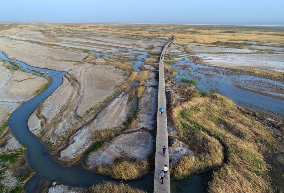 与一般湖泊不同,艾丁湖的湖面看上去到处都是盐壳,而它的外围则是湖积平原地貌,地表看似坚硬,实则暗藏盐沼泽和大量淤泥。在艾丁湖的湖心处,全是一些白色的晶盐,有研究结论显示,2万年前的艾丁湖也曾是一个淡水湖泊,由于湖水里充满了各种矿物,它也是中国范围内实至名归的最大矿化度湖泊。