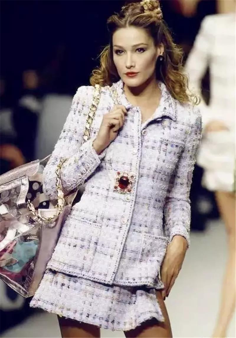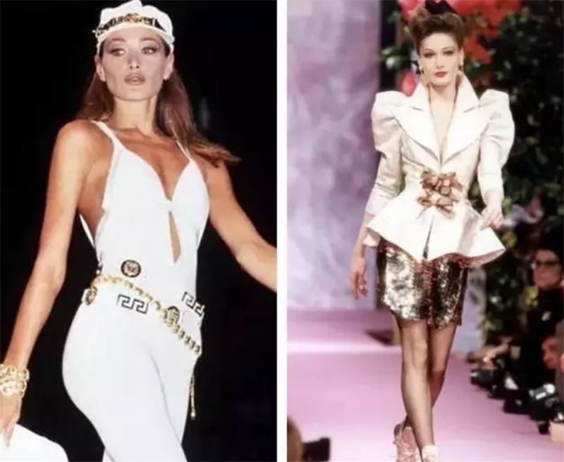 从1995年,Carla Bruni在T台上的图片可以看出,虽然当时的衣服在现在看来有些俗气,但是却被她穿出了一种很优雅自信的感觉。
