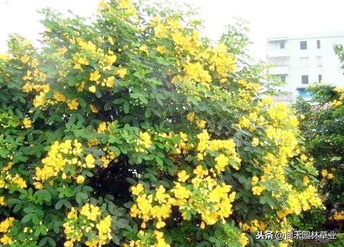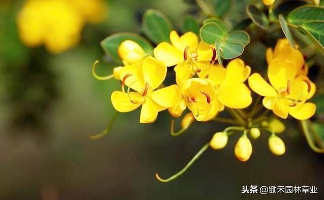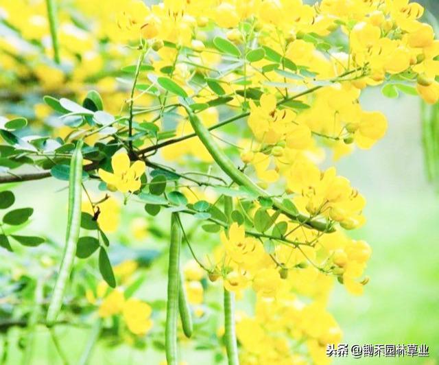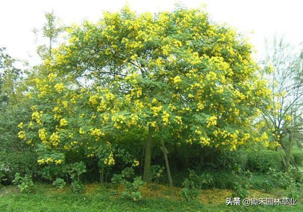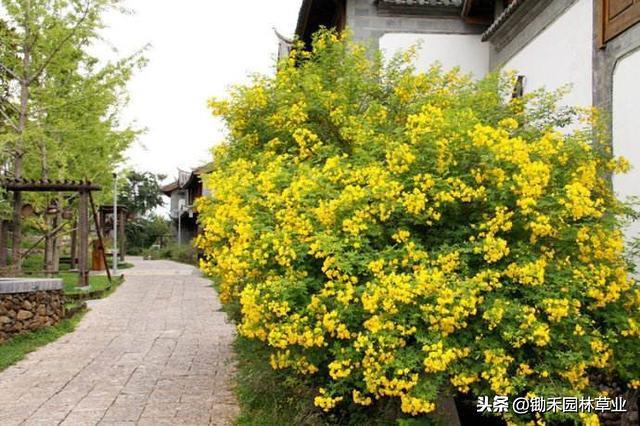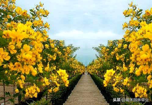 黄花槐:黄色给人以光明辉煌灿烂柔和纯净之感,象征希望快乐智慧
