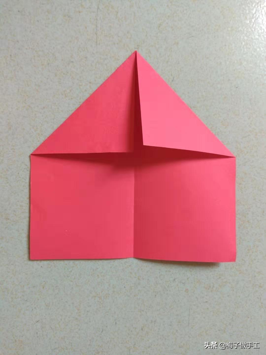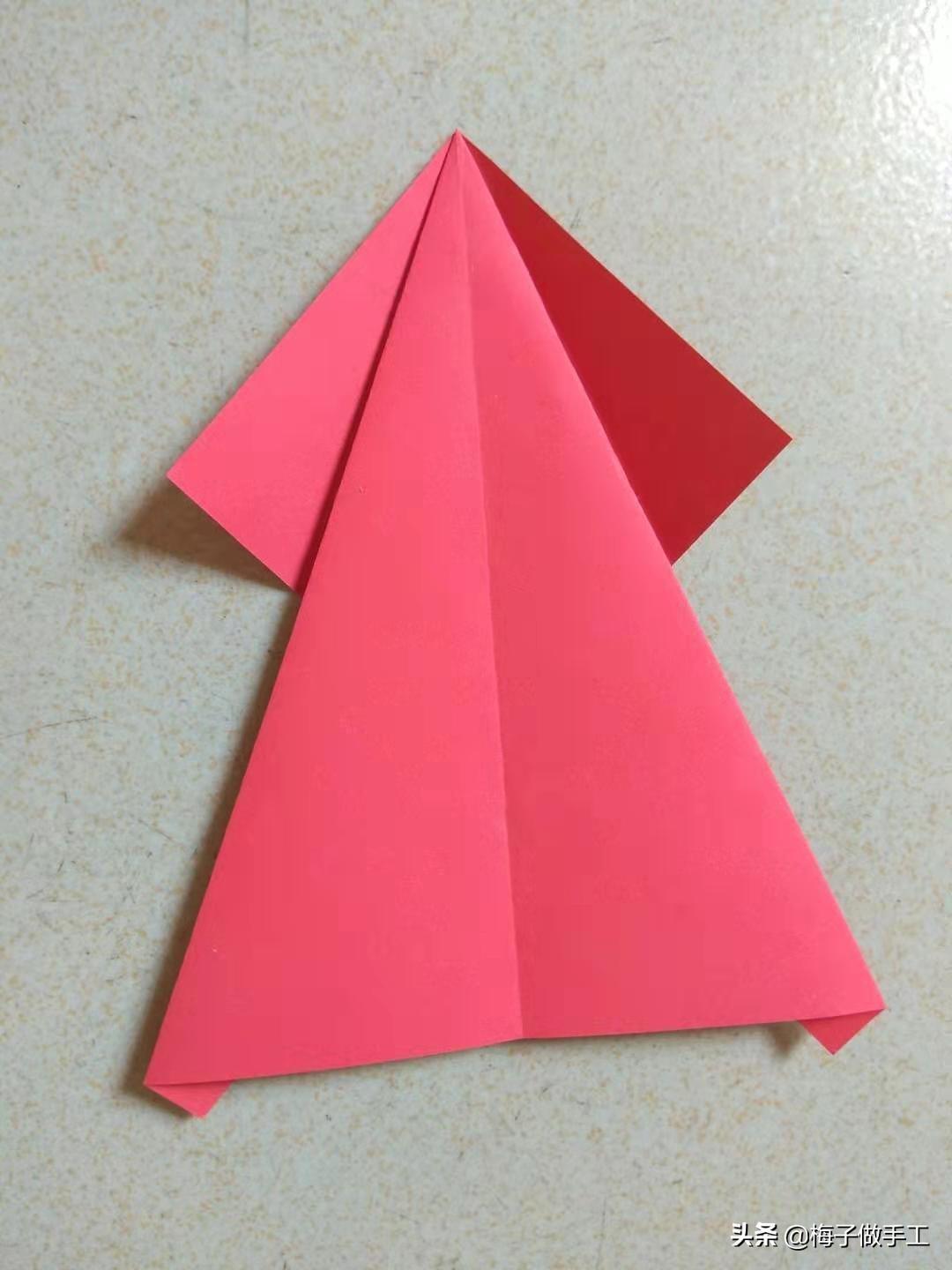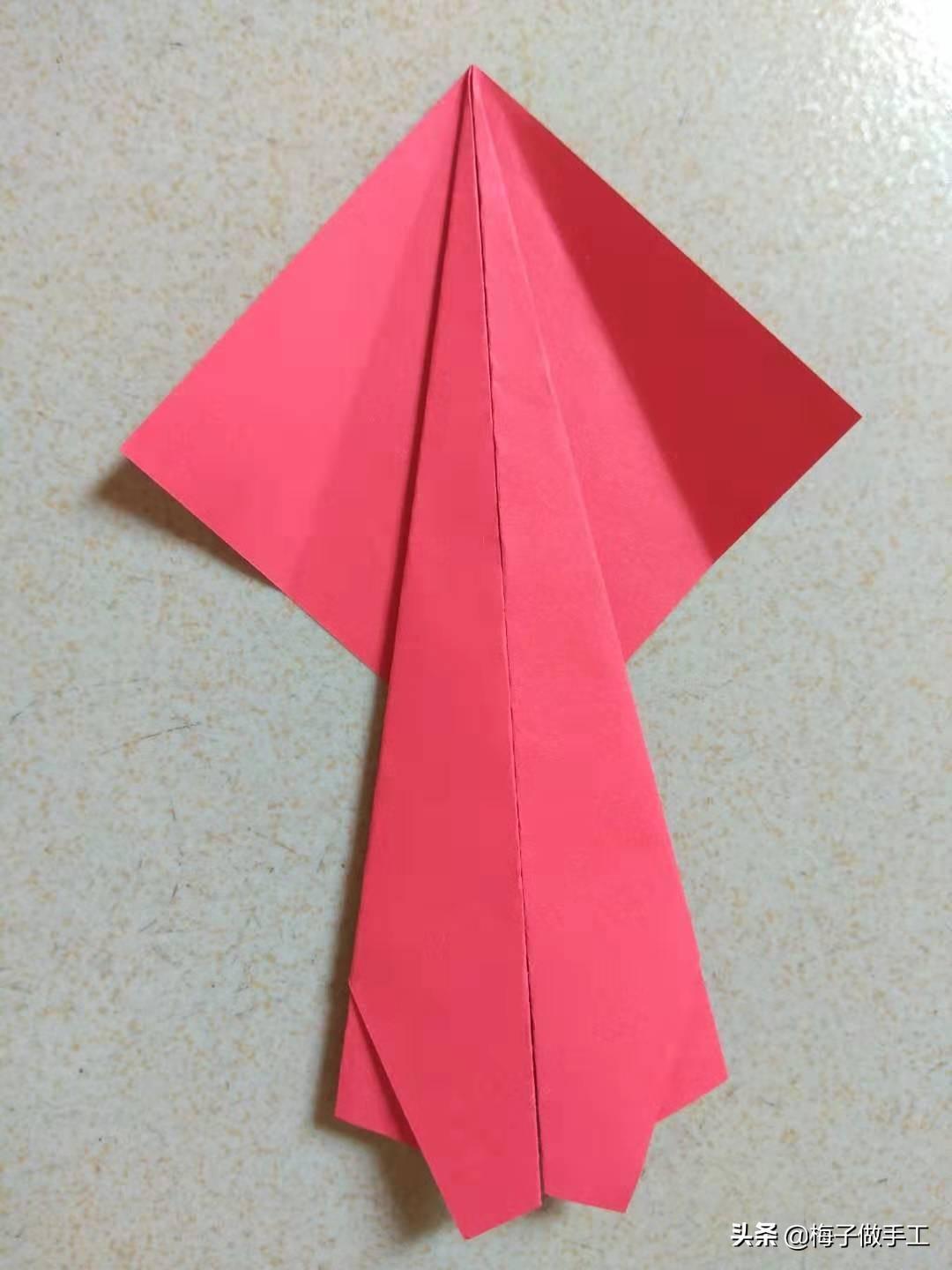 6、把正方形一端向后对折,然后整体沿着中线向上对折。