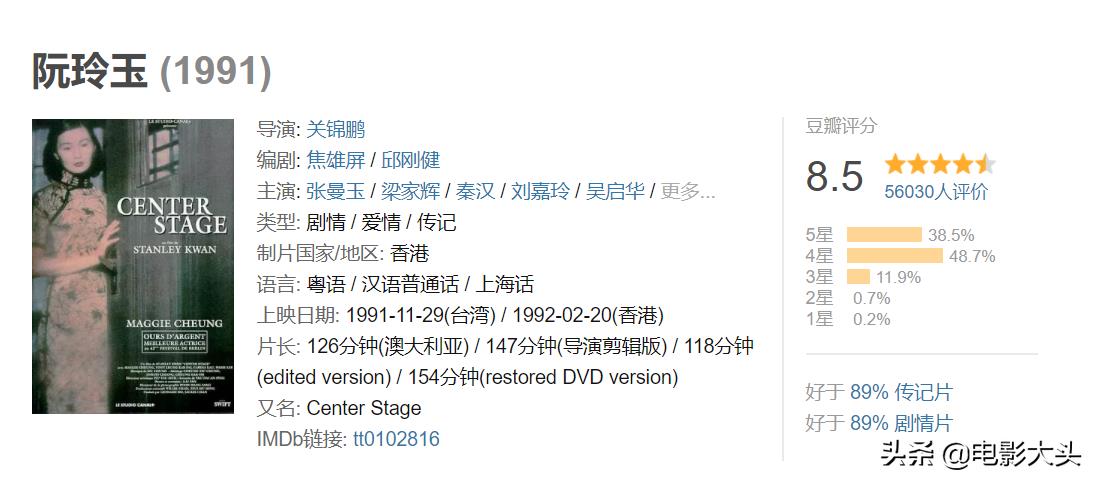 今天给大家介绍的是由张曼玉主演的影片电影《阮玲玉》由关锦鹏导演,张曼玉、秦汉、梁家辉和吴启华主演,于1992年公映。