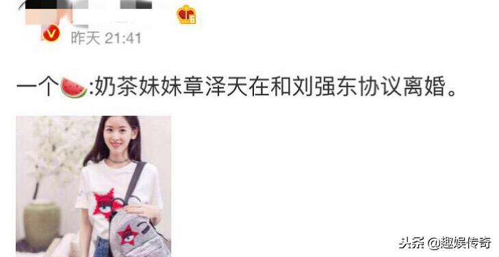 就在昨天,有一大V曝奶茶妹妹章泽天和刘强东正在协议离婚,难道奶茶妹妹无法原谅自己老公出轨的事实,决定要分道扬镳了吗?