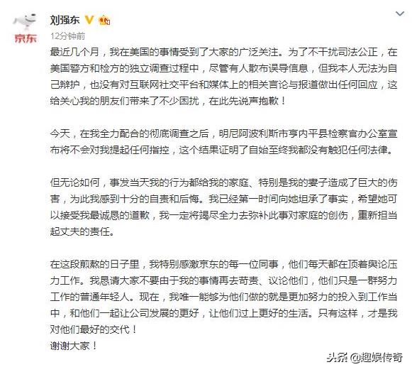 刘强东事件已经渐渐平息下去,最终以一封道歉信为终点:没有性侵,双方自愿。虽然在法律上无罪,但站在道德层面上,刘强东并不是一个好丈夫好爸爸,致歉声明中表示会好好补偿妻子章泽天,但丈夫出轨对自己造成的伤害是简简单单就可以弥补的吗?网友们也纷纷都在关注着奶茶妹妹章泽天的动向,到目前为止,章泽天并没有直接对这件事进行回应。