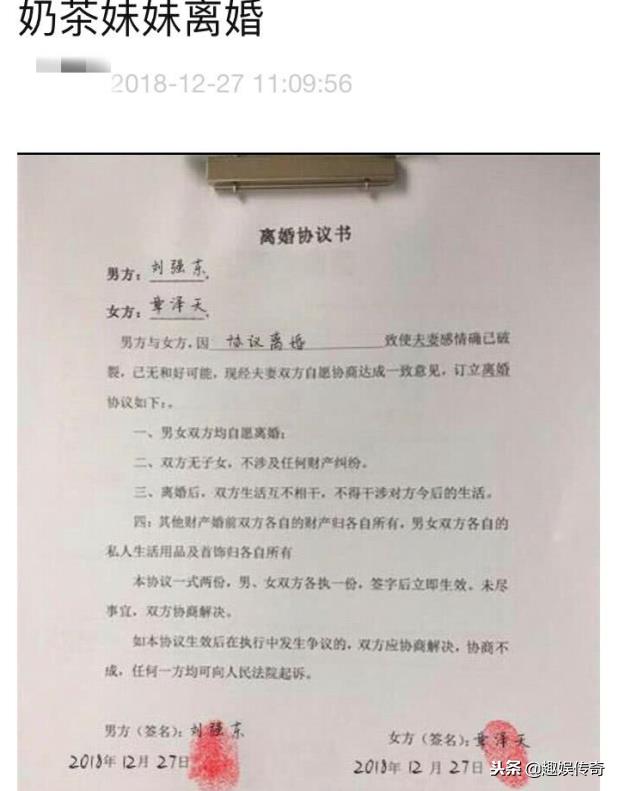 12月27日,又有网友爆料称奶茶妹妹章泽天和刘强东正在协议离婚,更让人震惊的是还晒出了他们两个人的离婚协议书,什么?!离婚协议书?是的,就是下面这个。